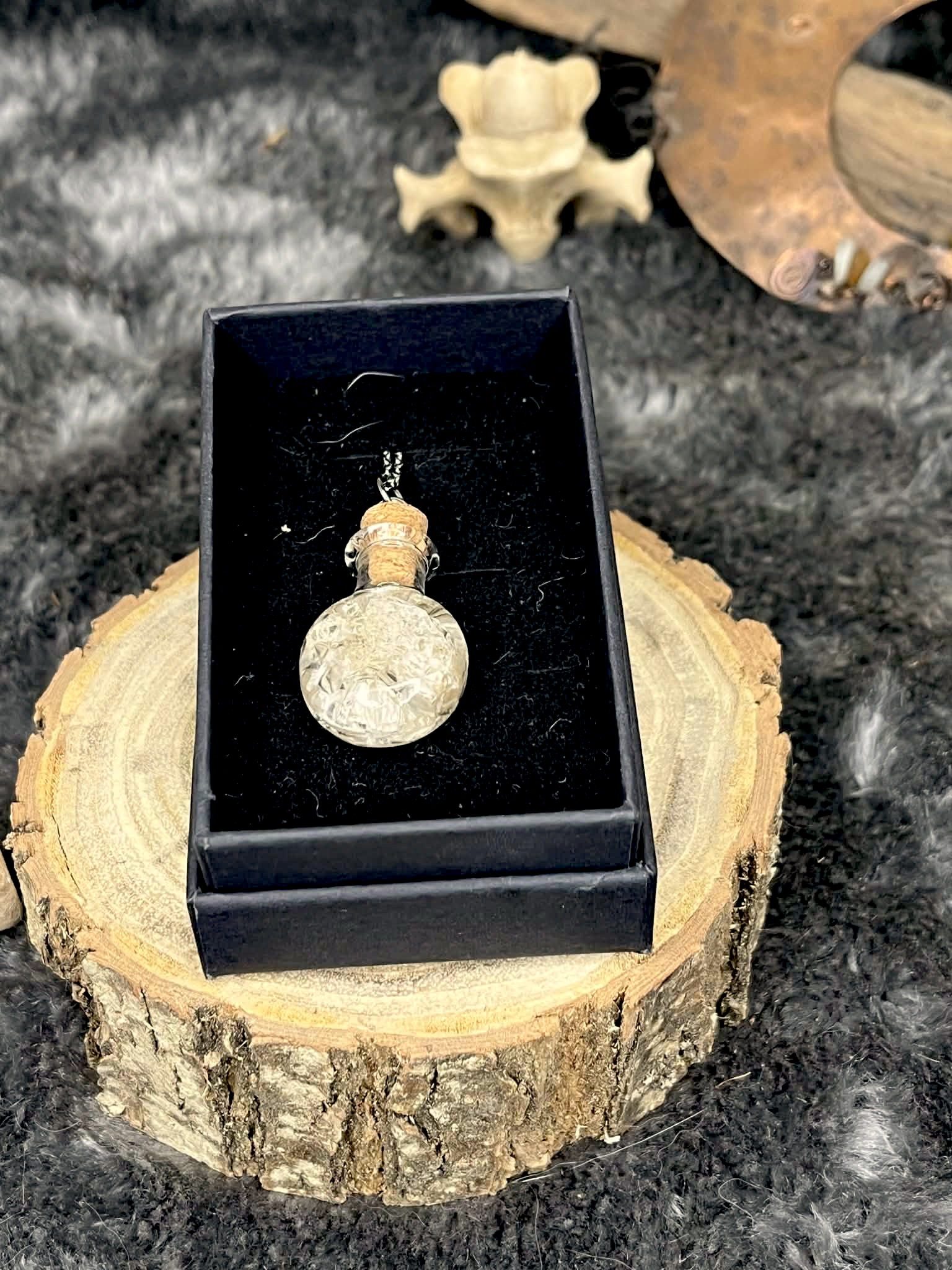 Ce flacon contient un fragment de mue de Nanaka, mon python regius et familier, symbole de régénération, de sagesse et de lien au vivant.